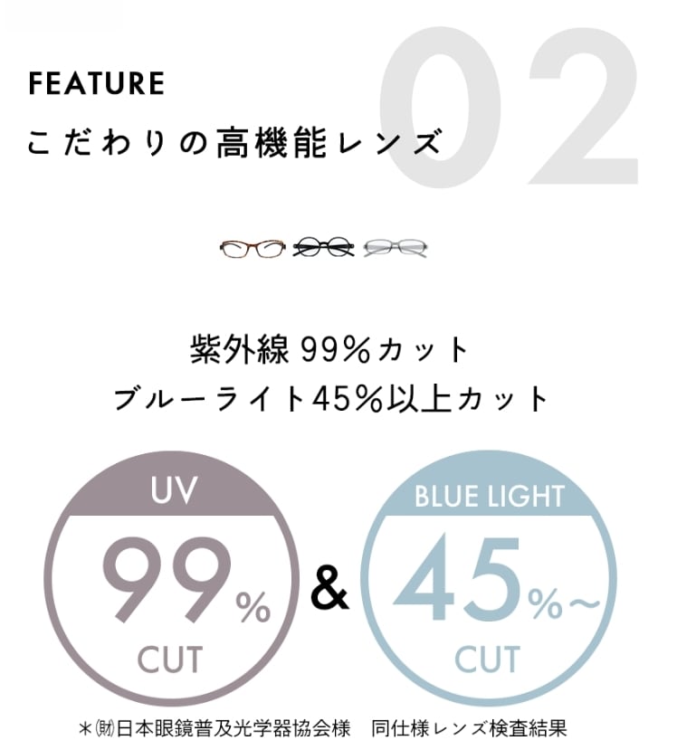 フレーム:プラスチック(塗装) レンズ:プラスチック(コーティング)
