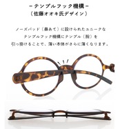 鼻あてに設けられたユニークなテンプルフック機構にテンプルを引っ掛けることで薄い本体がさらに薄くなります。