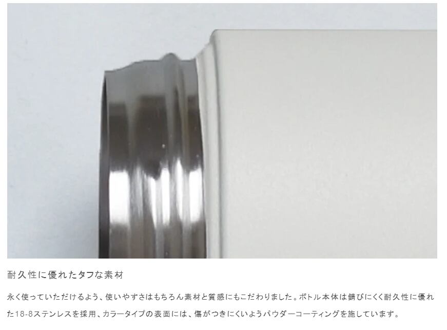 ※保温効力とは室温20℃±2℃において製品に熱湯を入れ、湯温が95℃±1℃になった時に蓋をして6時間後に計測した湯の温度を示します。※保冷効力とは室温20℃±2℃において製品に冷水を入れ、水温が4℃±1℃になった時に蓋をして6時間後に計測した水の温度を示します。※飲料物を入れる前にあらかじめ少量の熱湯 (冷水) を入れ、1-2分程度予熱 (予冷) すると保温 (保冷) 効果が上がります。○本品は飲料用ボトルです ○電子レンジ、オーブン、食器洗浄・乾燥機でご使用いただけません ○火のそばに置かないでください ○煮沸洗浄はしないでください ○乳幼児の手の届く所には置かないでください ○破損や水漏れの原因になりますので落としたり強い衝撃を与えないでください ○容器が膨張し破損やけがの原因になりますのでドライアイスや炭酸飲料は入れないでください ○飲み口パーツを閉める際に溢れる可能性がございますので飲料物は入れすぎないようご注意ください ○蓋と飲み口パーツの閉め方が不十分ですと中の液体が漏れる可能性がございますので、確実に閉まっていることを確認してください ○シリコーンパッキンを正しく装着してご使用ください ○蓋を閉める際は水平に閉まっていることを確認してください ○蓋は反時計回りに回し、カチッという感覚のあったところから時計回りに回すと、水平に閉まります ○蓋を閉めた後は、製品を逆さや横向きにして漏れのないことを確認してください ○万が一の漏れを防ぐためにバッグなどに入れる場合は縦置きにしてください ○蓋を開ける際に飲み口パーツが緩まないよう、飲み口パーツをしっかりと固定しながら蓋を回してください ○二重構造のため手で触れる部分が熱くなくても中の飲み物が熱い場合がございますのでやけどには十分にご注意ください ○車の中など高温になる所には放置しないでください ○錆や飲料物の腐敗の原因になりますので、中身を入れた状態で長く放置しないでください ○ステンレスの錆を予防するために汚れや水分は早めに落とし、十分に乾燥させ、他の金属との接触を避けて収納してください ○錆や破損の原因になりますので水中に放置しないでください ○洗浄の際はクレンザーやたわしを使用しないでください ○錆の原因になりますので塩素系漂白剤を使用しないでください ○容器内部に錆のような斑点が付着した時は、ぬるま湯と約10%のクエン酸を入れ、2-3時間後に柔らかいスポンジで洗い、充分にすすいでください