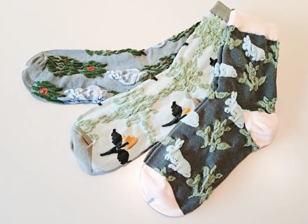 ウサギやお花のモチーフがデザインされているかわいらしいソックスです。