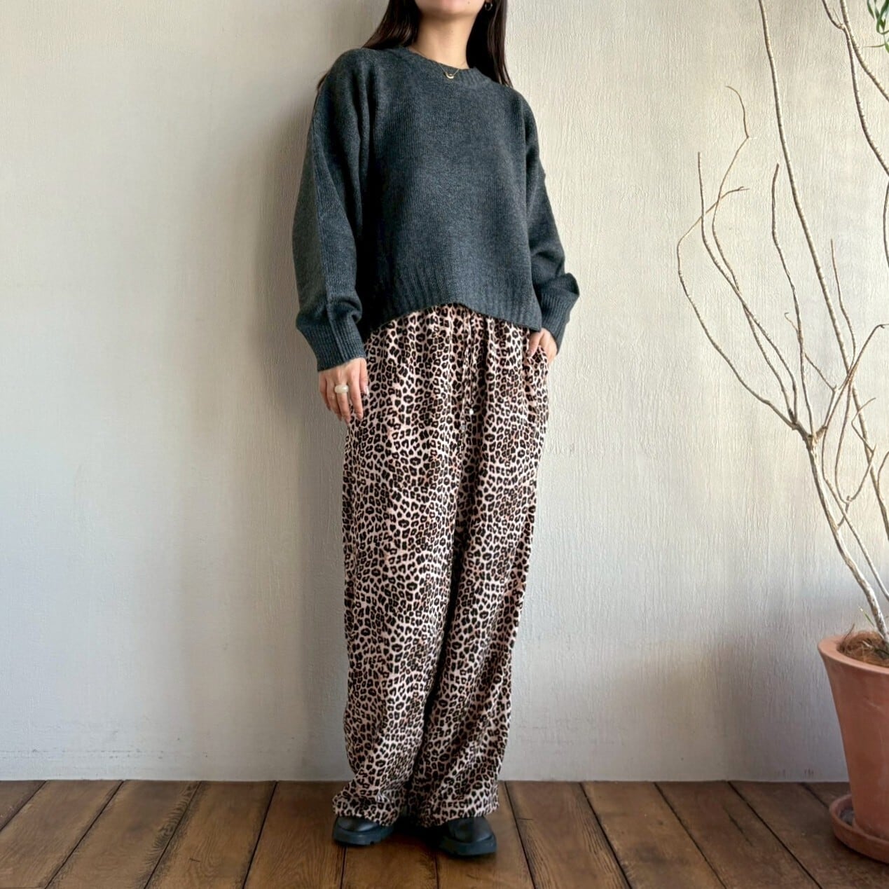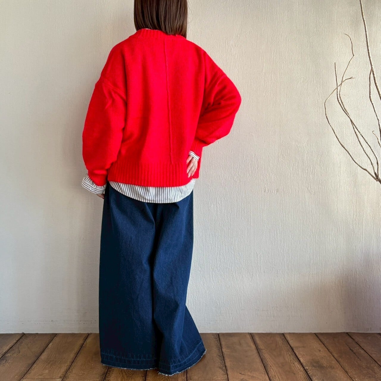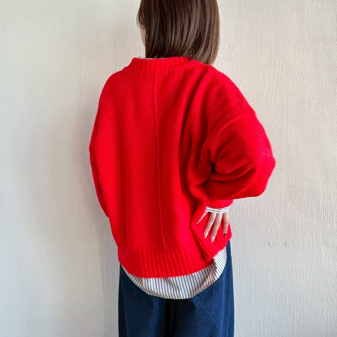 すとんと落ちたドロップショルダーに、程よくゆったりとしたサイズ感で抜け感があります。