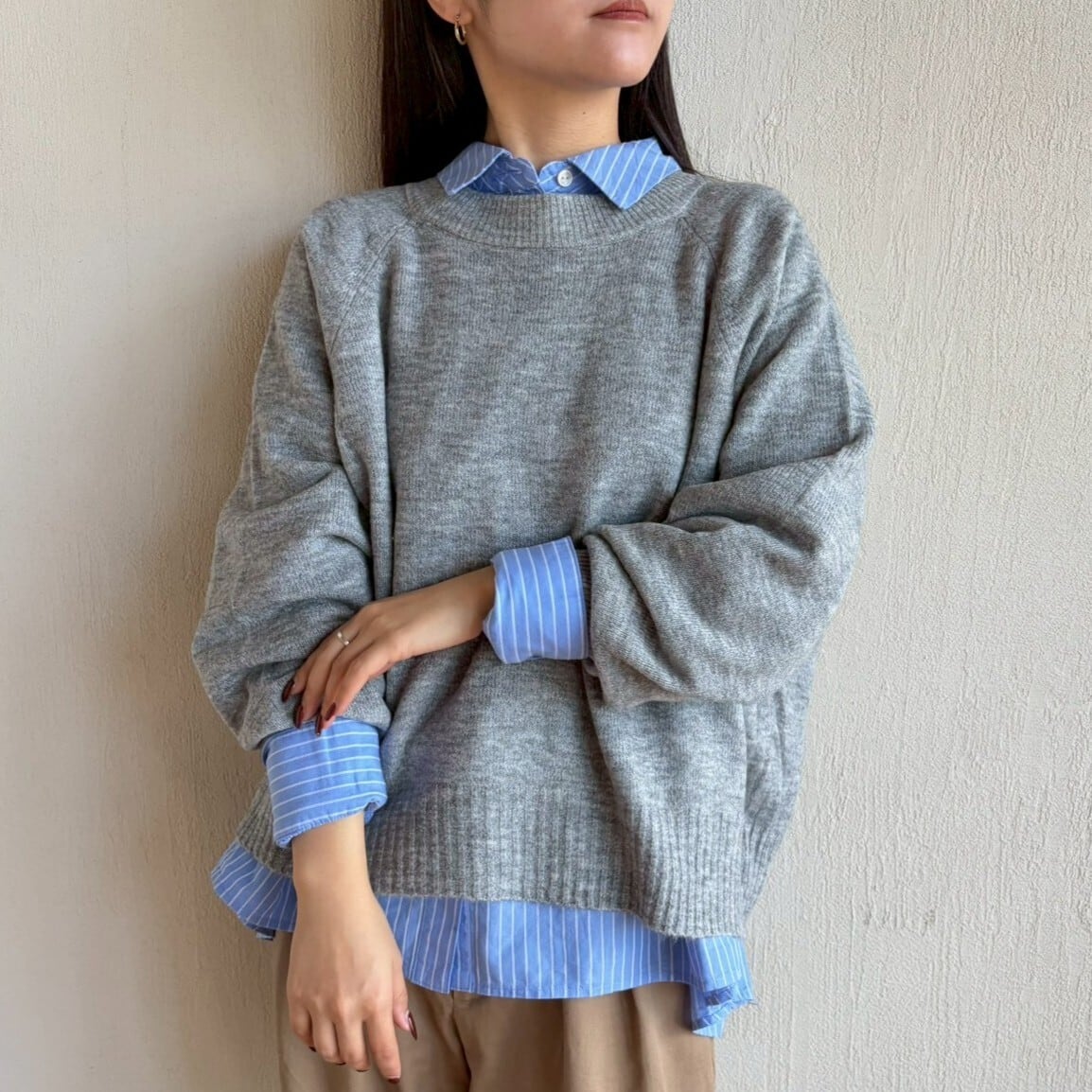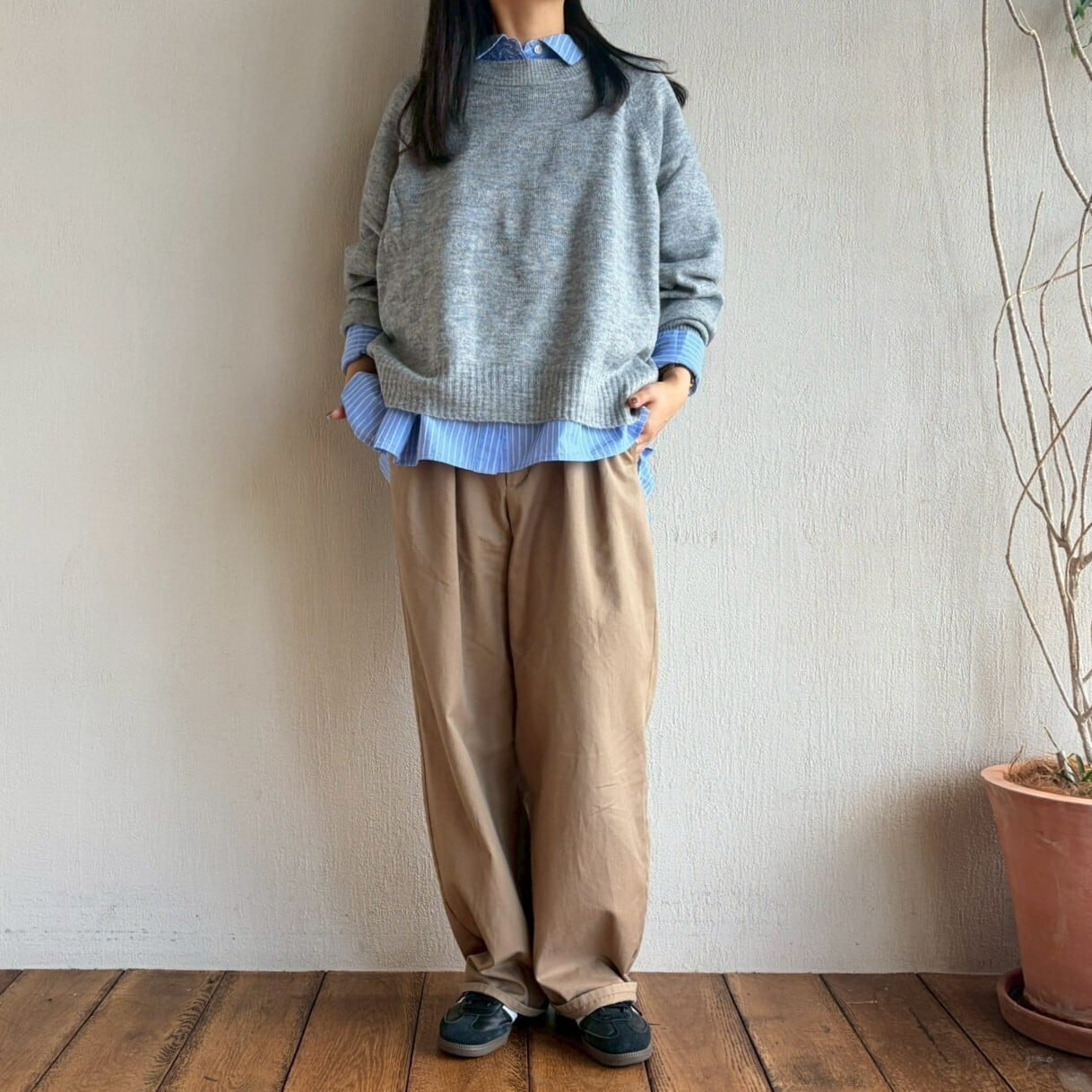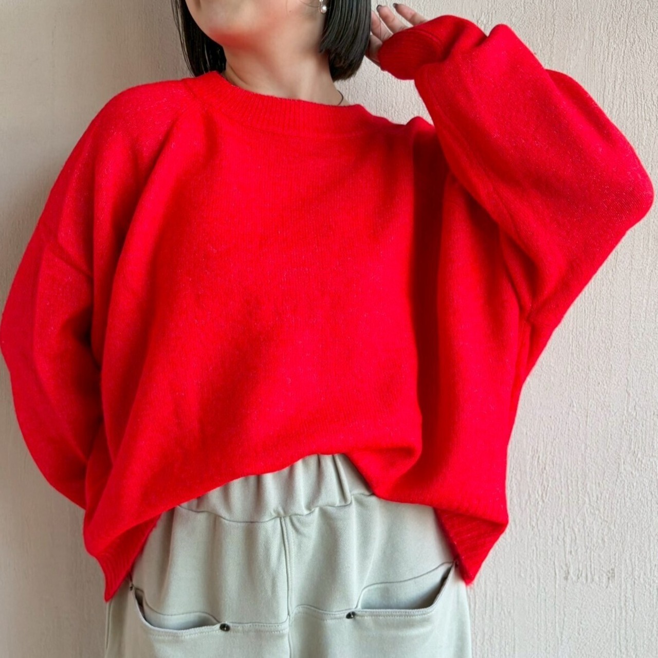 ヤクライクヤーン ラグランワイドニットプルオーバー トップス