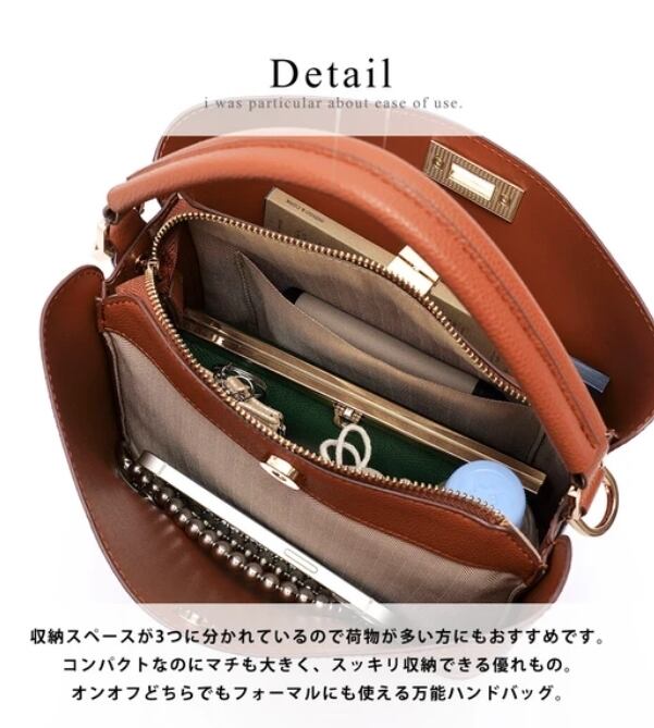 オンオフどちらでもフォーマルにも使える万能ハンドバッグ。