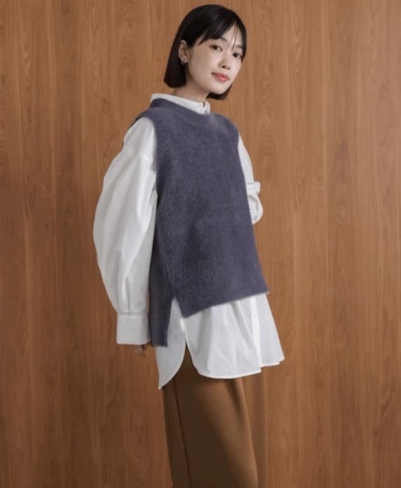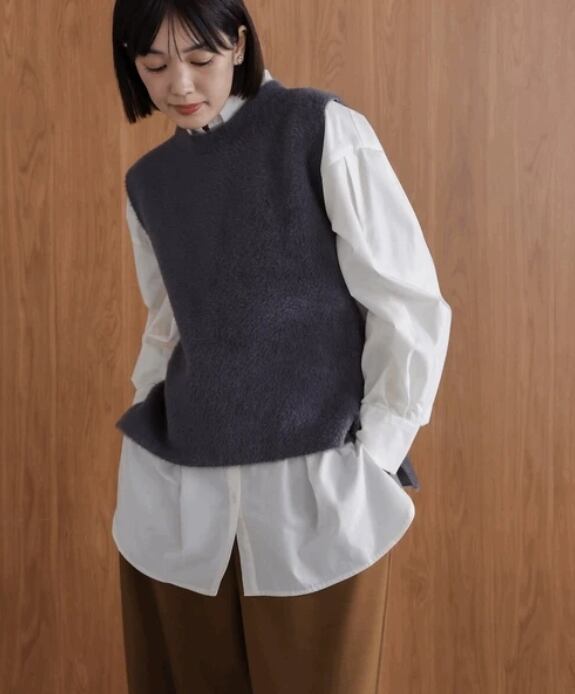 ふわふわとした毛足が心地よい、シャギー素材のベストです。