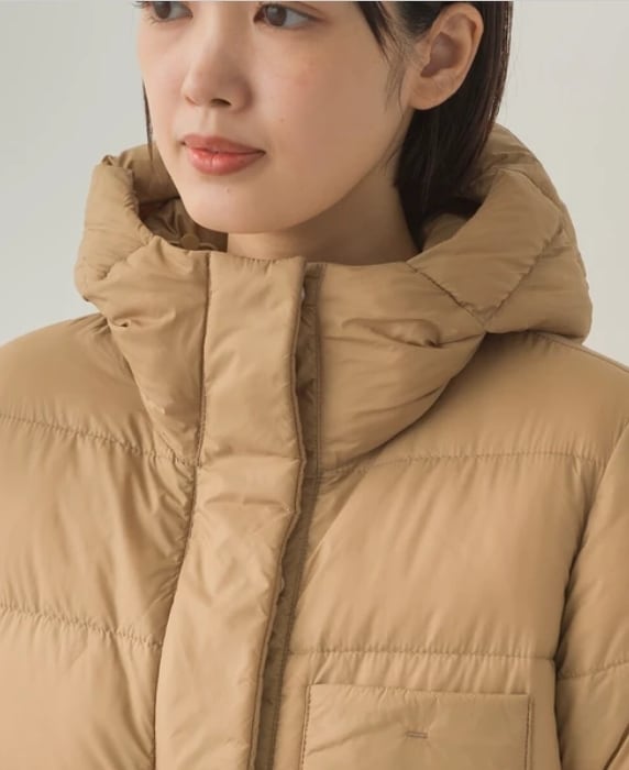 ナイロン100%のなめらかな生地に、ダウン90%・フェザー10%を使用した軽量仕立て。