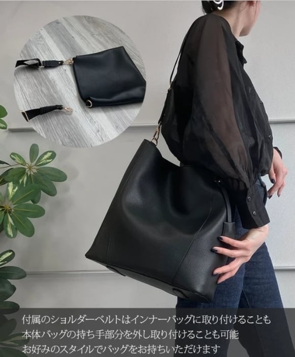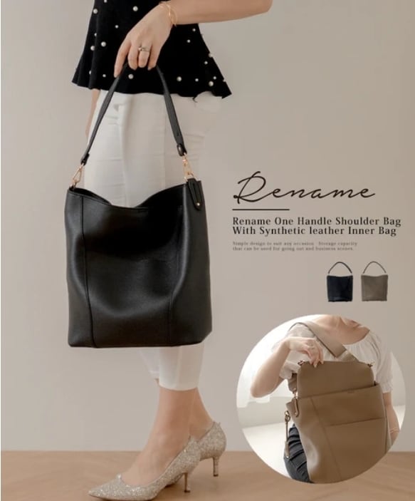 ワンハンドル シンプル ショルダーバッグ (インナーバッグ付き)