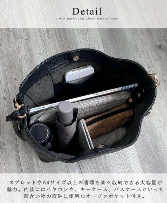 手提げとしてもショルダーバッグとしても使える、シーンに合わせた使い分けが可能です。
