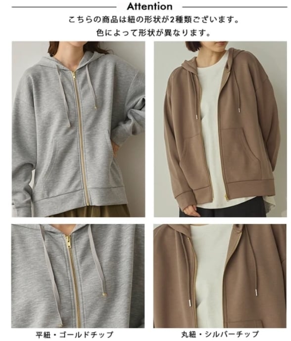 ベーシックなデザインの中に、フードコードの端に施されたゴールドチップとゴールドジップがさりげない上品さをプラス。