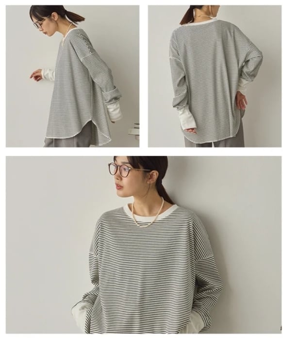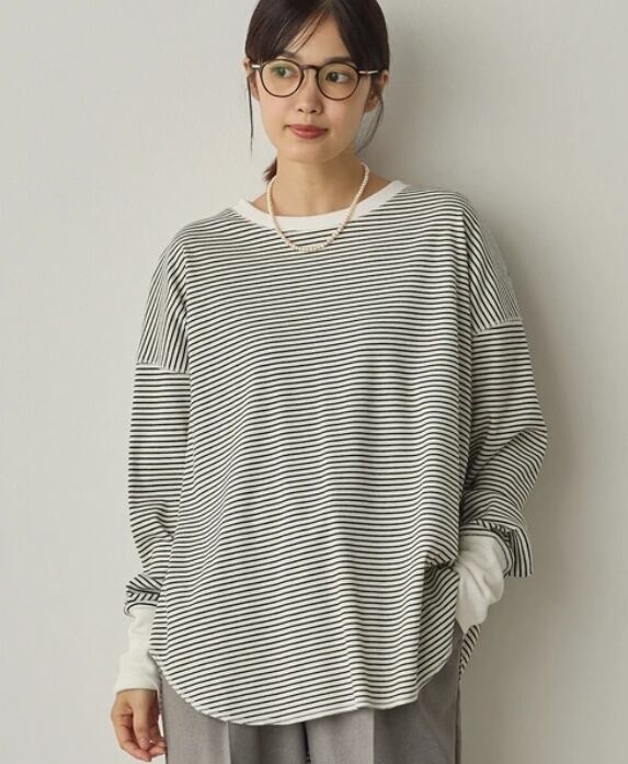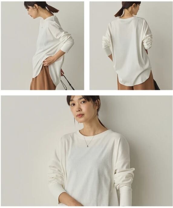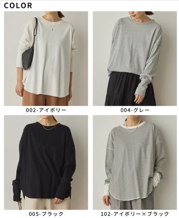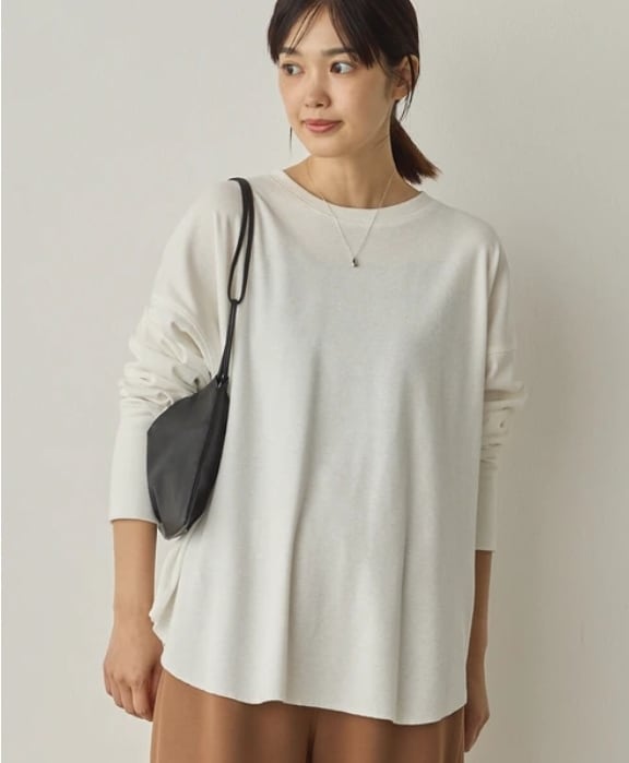 伸縮性があり快適な着心地で、重ね着にも一枚着にも活躍する万能トップスです。