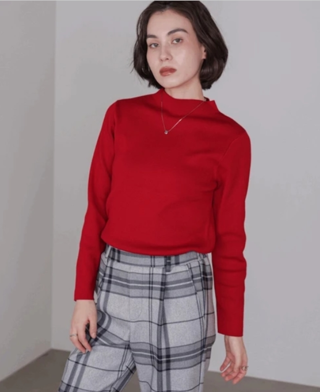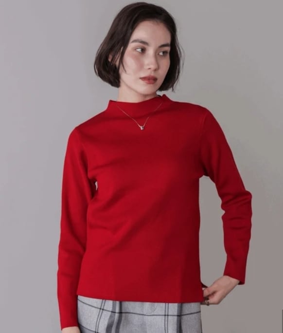 高めのハイネックが首元をやさしく包み、寒い季節もあたたかく。