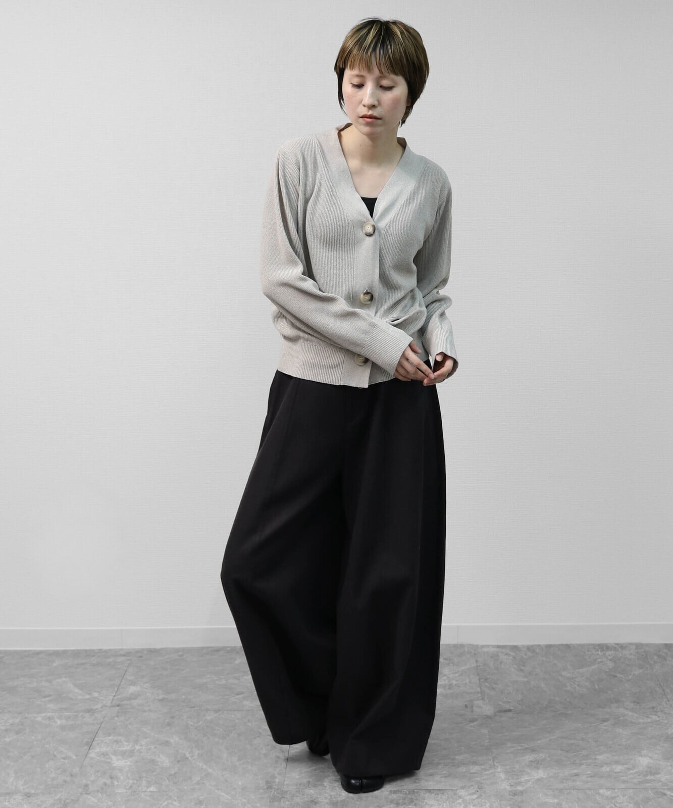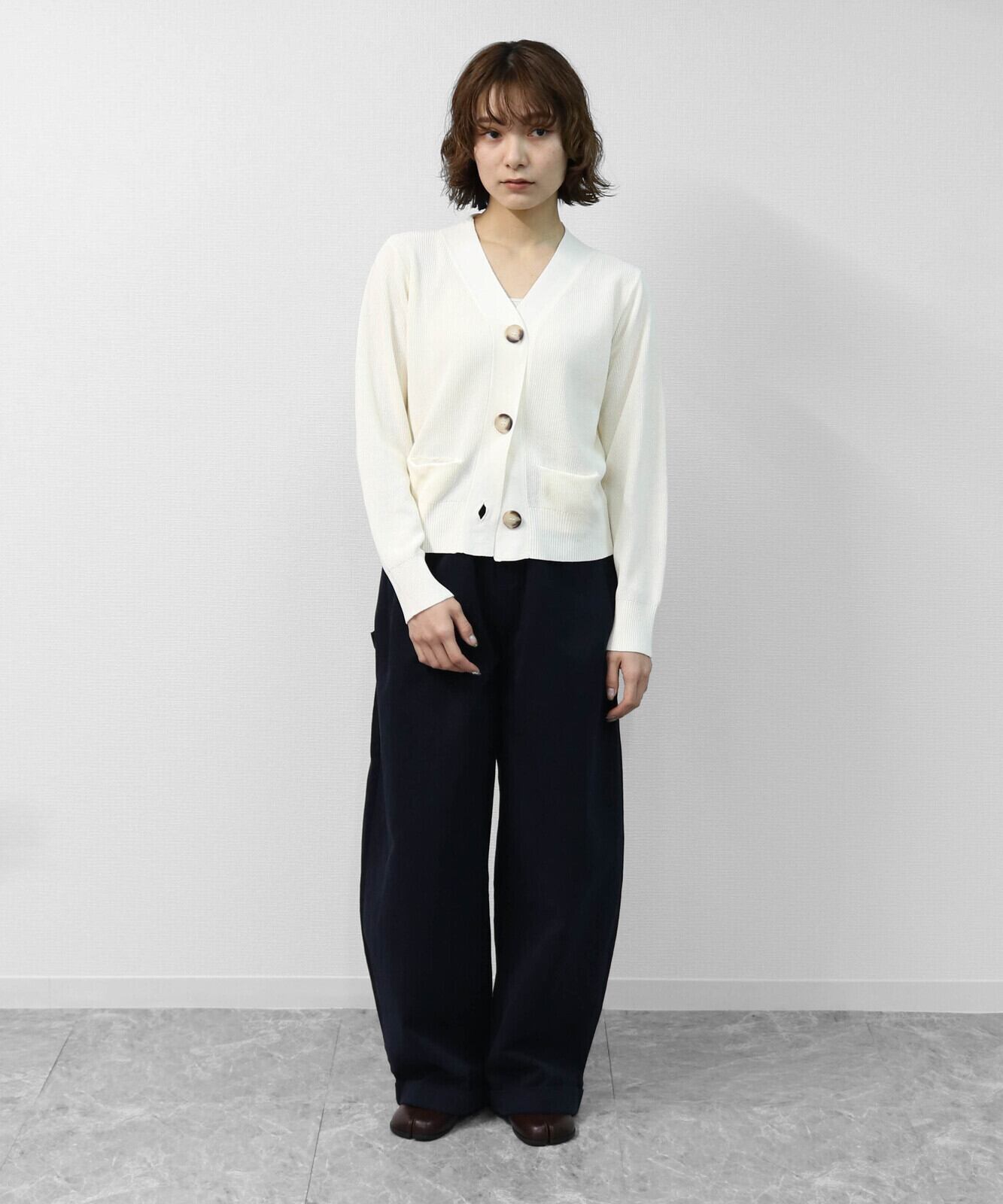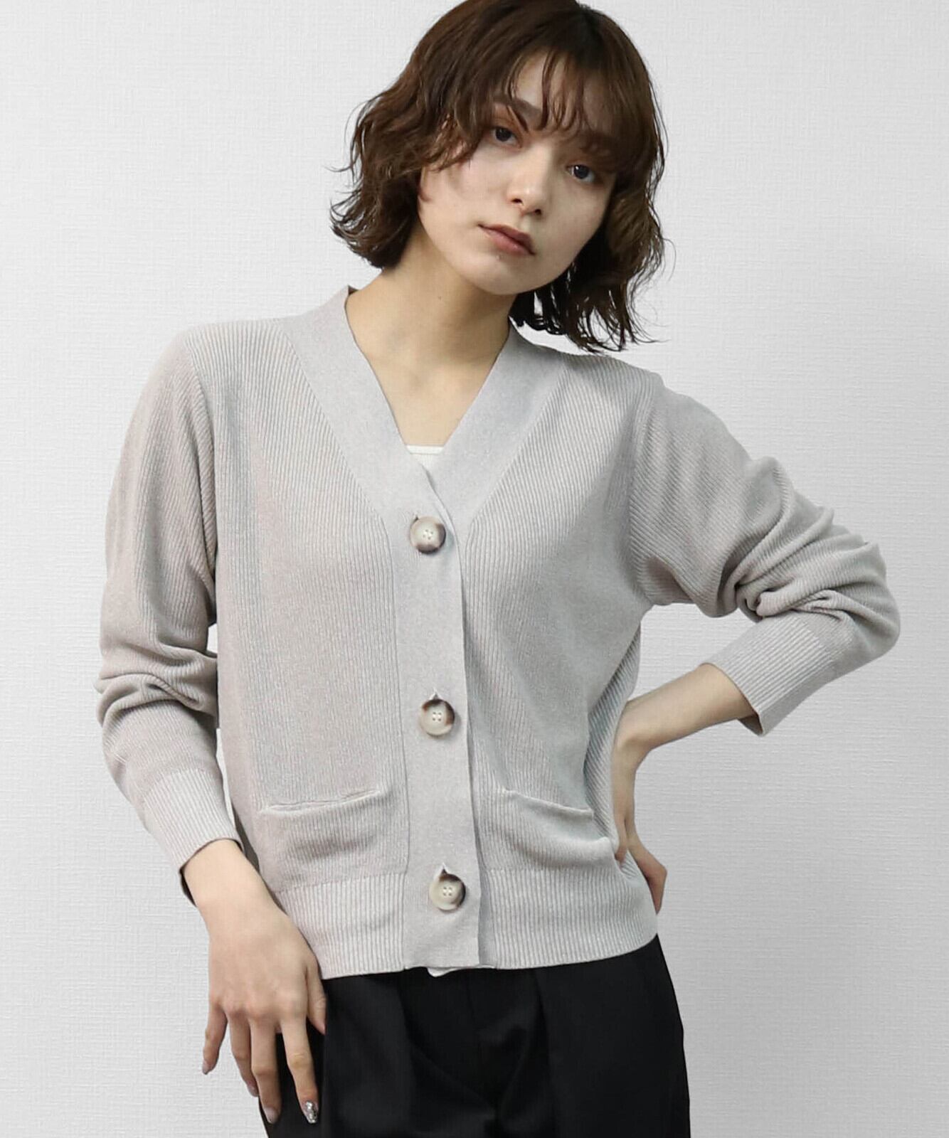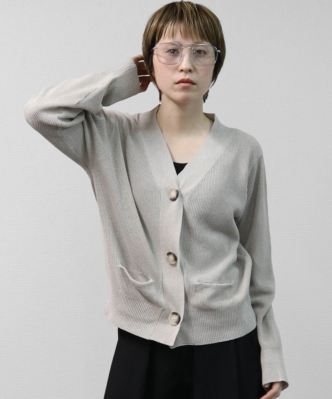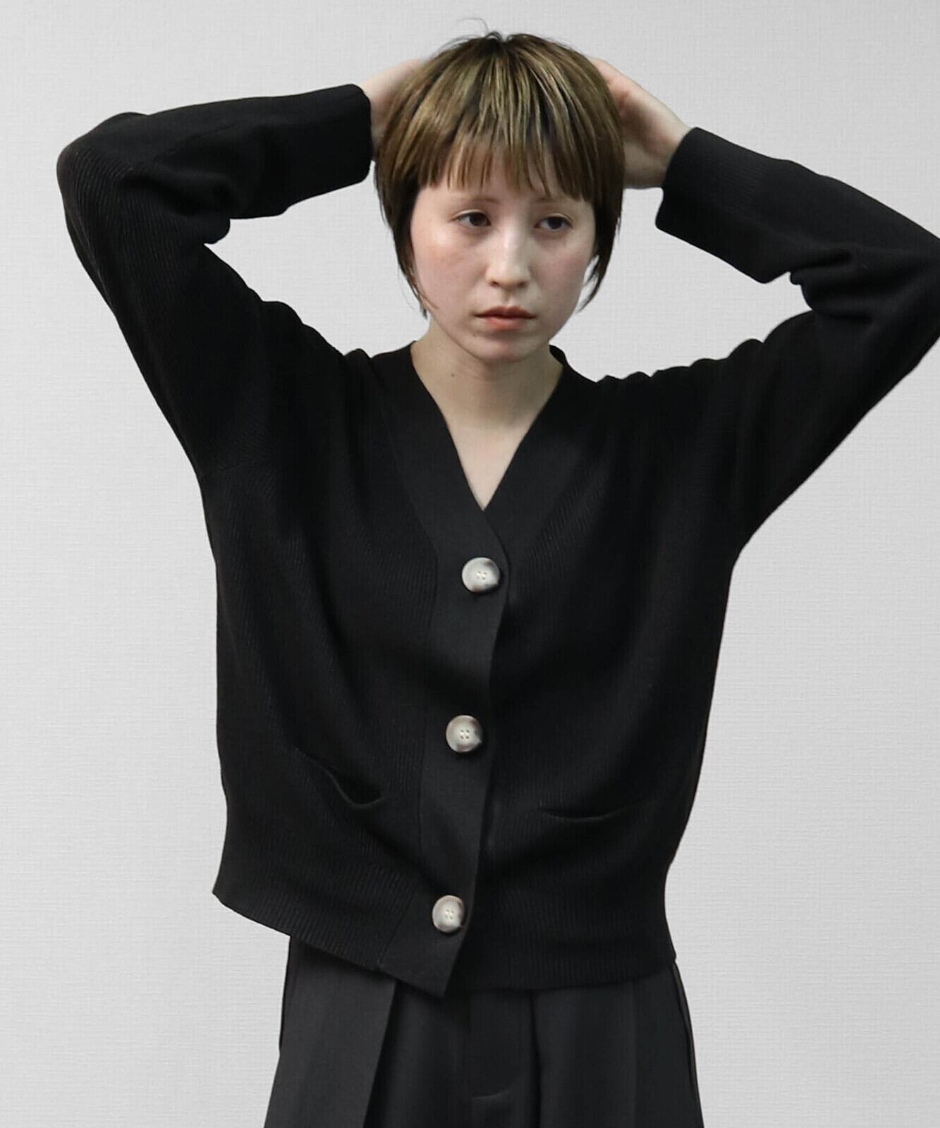 ハイツイストヤーン片畦マーブルBIGボタンカーディガン トップス