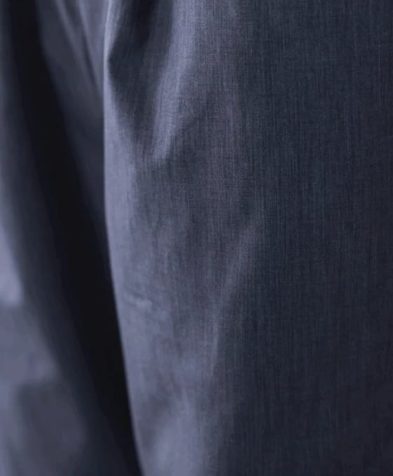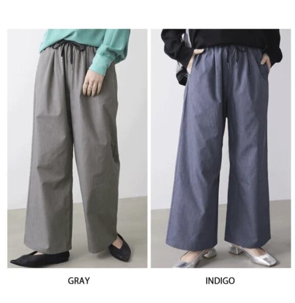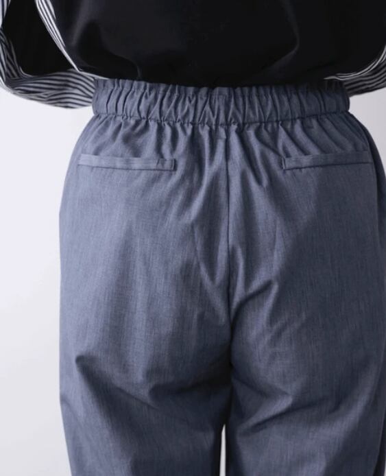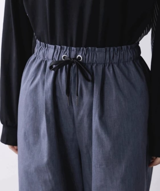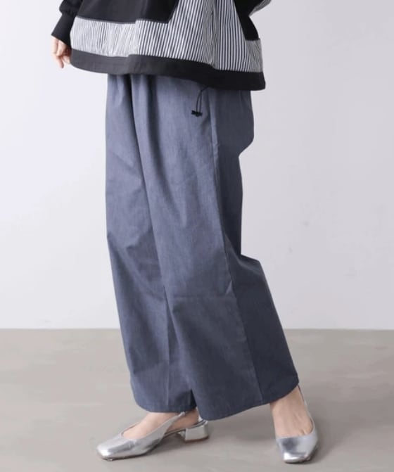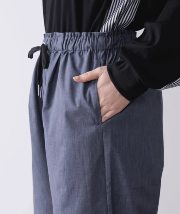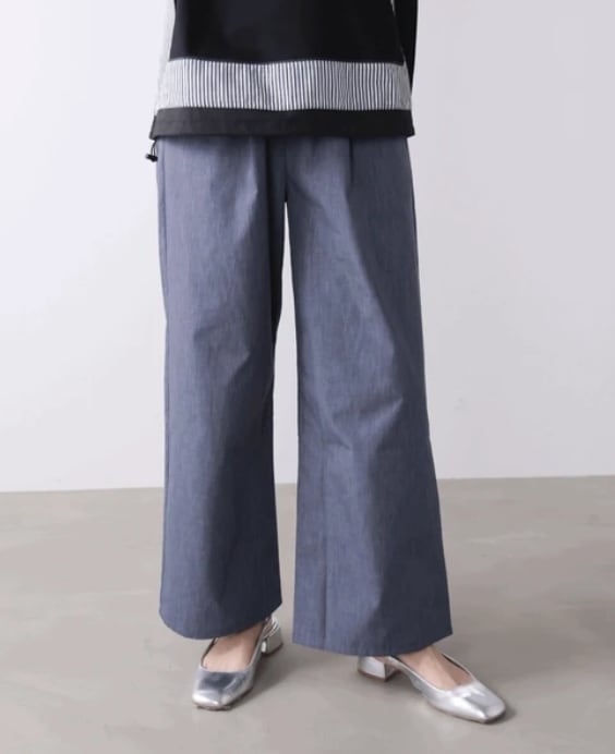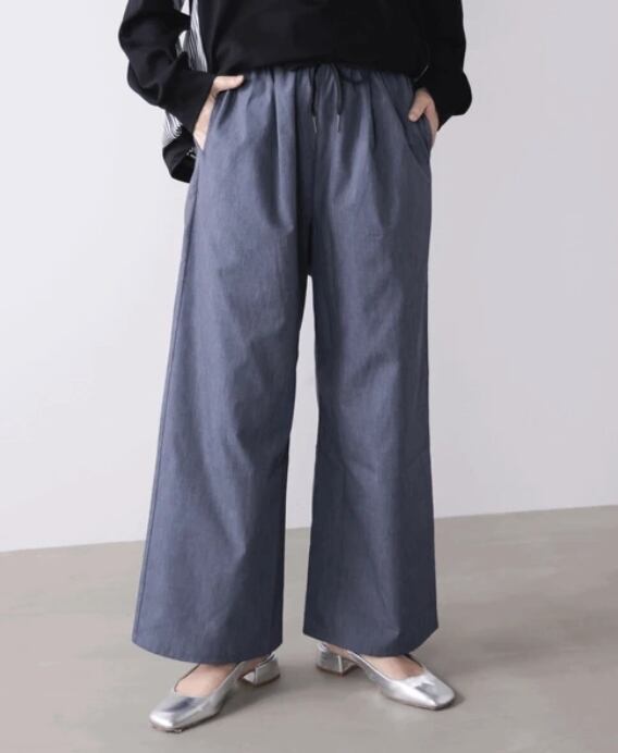デニムのような表情を持ちながらも軽やかな生地感で、カジュアルすぎず上品な印象に。