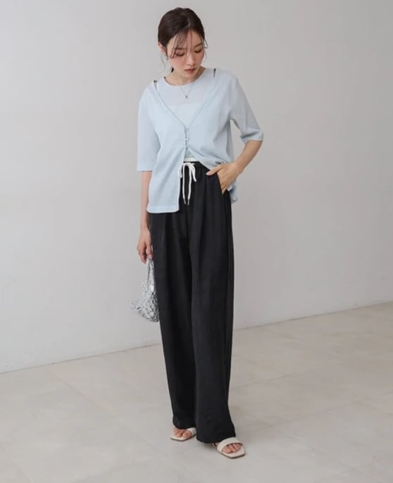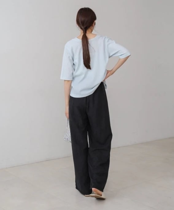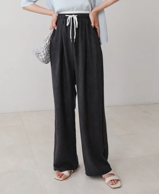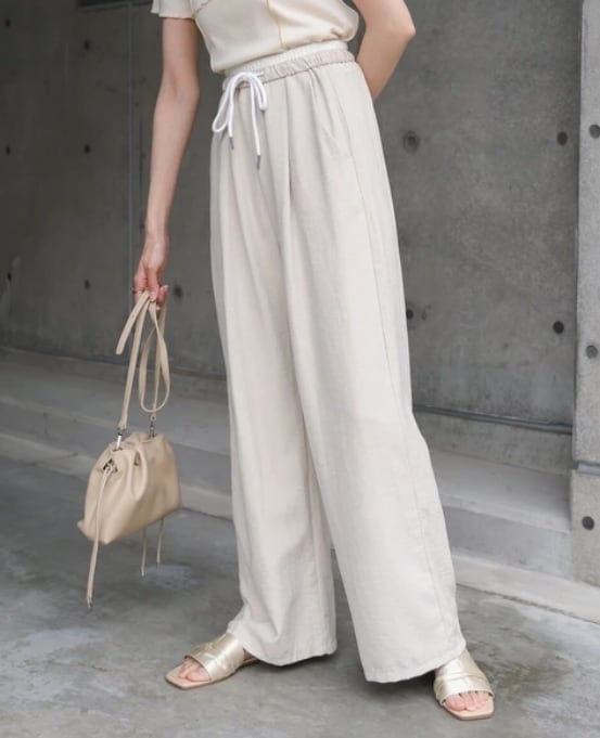 ウエスト部分にダブルデザインが施されていることで、スタイルにメリハリが生まれ、脚長効果のあるパンツの登場。肌馴染みの良いスキンカラーで、リラックス感がありながらも上品な印象を与え、ビーチやカジュアルなシーンにぴったりのアイテムです。ウエストゴムで楽な着心地も嬉しいポイント。