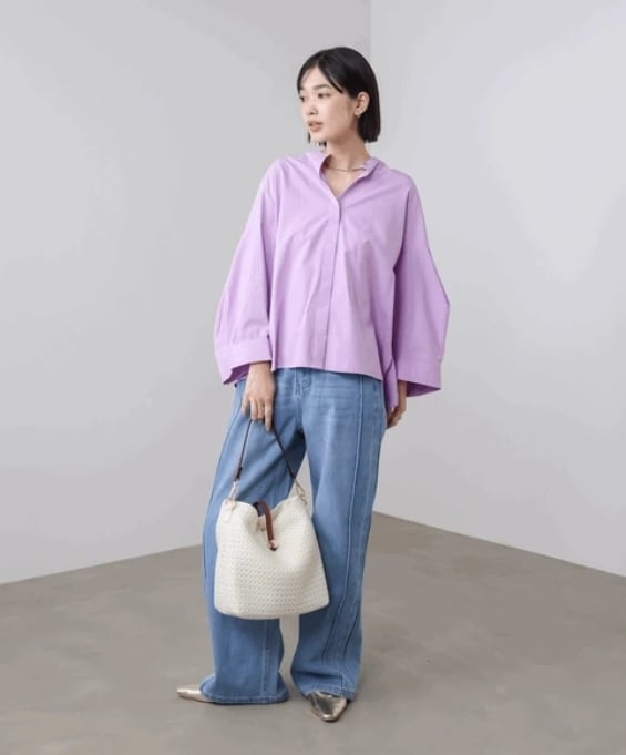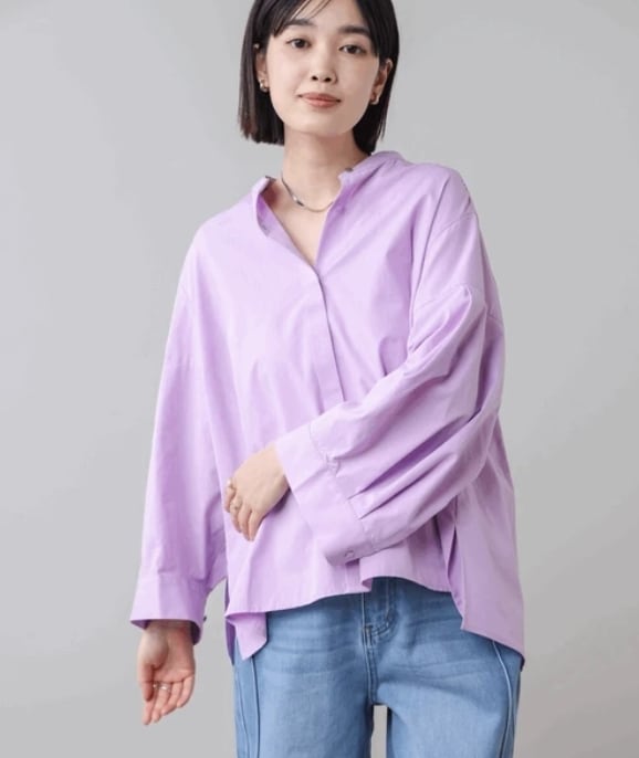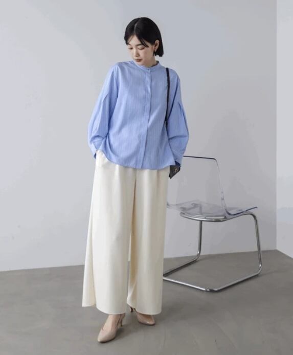 ギャザー等でボリューム感を出しているわけではないので、甘くなりすぎずに今年らしい構築的なデザインがこだわりのブラウスです。