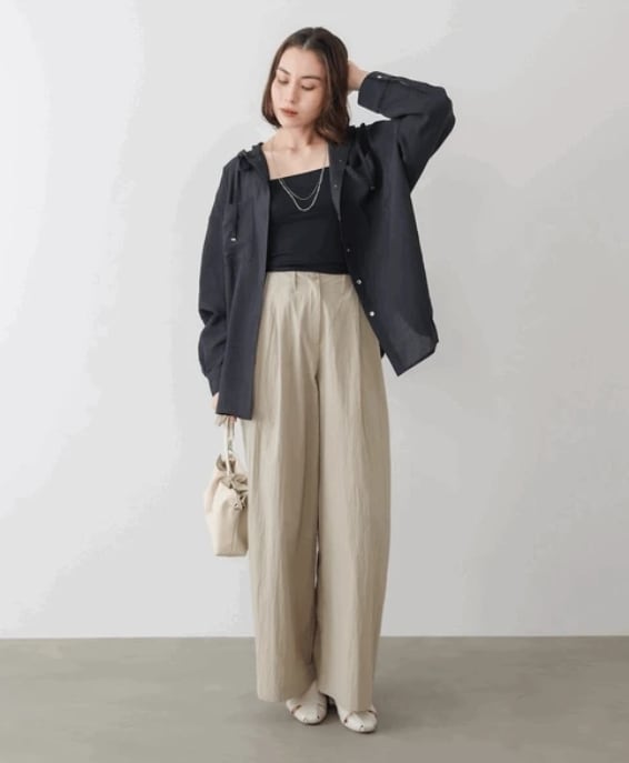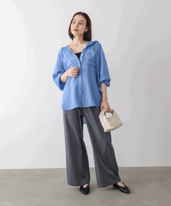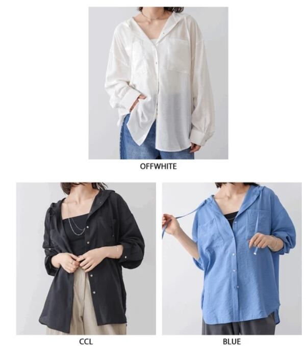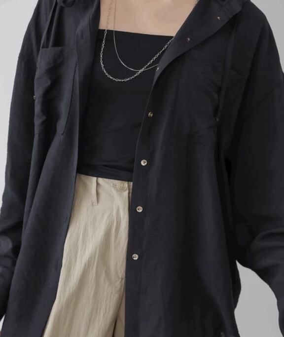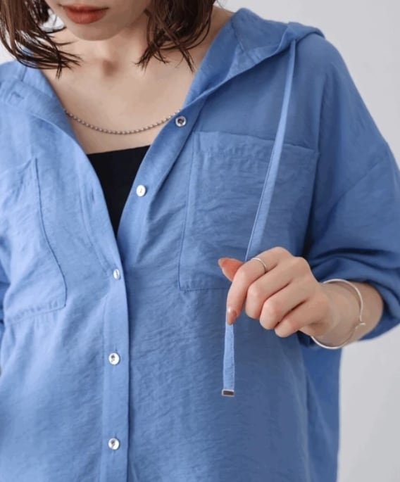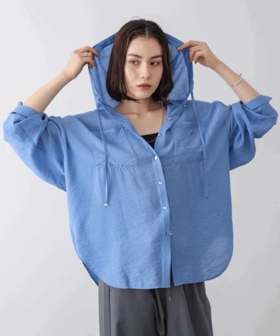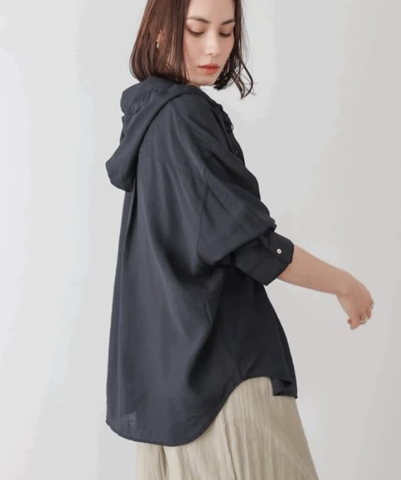 大人の抜け感ある上品なフードシャツです。